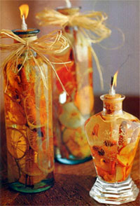 Introduce en el frasco las canelas y las flores deshidratadas primero para que las rodajas de frutas no caigan hasta el fondo. Luego, una a una coloca las rebanadas de las frutas, si están demasiado duras déjalas en remojo durante 48 hs en la parafina líquida o aceite, con el alambre te ayudaras a ordenarlas en la posición que quieras dentro del frasco, utiliza tu creatividad.